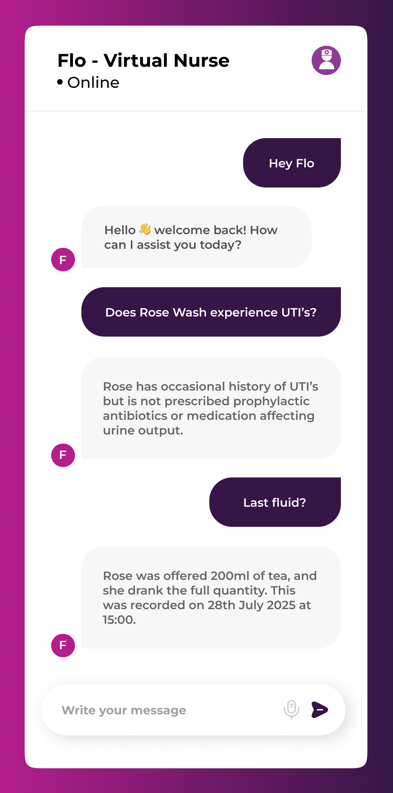 Named after Florence Nightingale, our virtual nurse Flo delivers care re-imagined for the digital age.